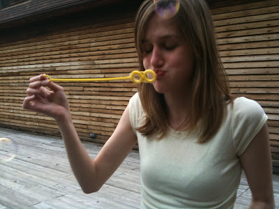 After yelling and signing "QUELF IN THE LAND OF THE FARM!" a gazillion and three times we finished the game and headed outside. I played hairdresser and there was bubble blowing and and picture taking and such.
